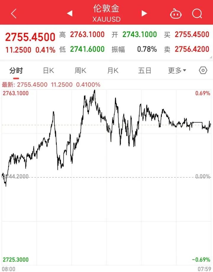 金价飙升至近三个月高点,略低于历史最高水平。现货黄金涨约0.4%,一度突破2760美元/盎司。COMEX黄金期货收涨0.26%,报2766.3美元/盎司。
